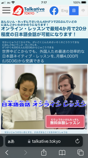 日本語授業が受うけられるサービスですTalkativeTokyoはこうしといったいいちで
